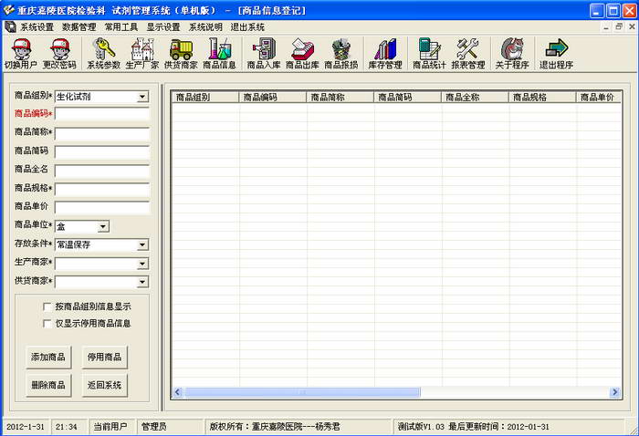 1楼 华军网友 2020-03-11 20:15:02实验室试剂管理系统 单机版界面设计很容易上手,功能很丰富,本人极力推荐!