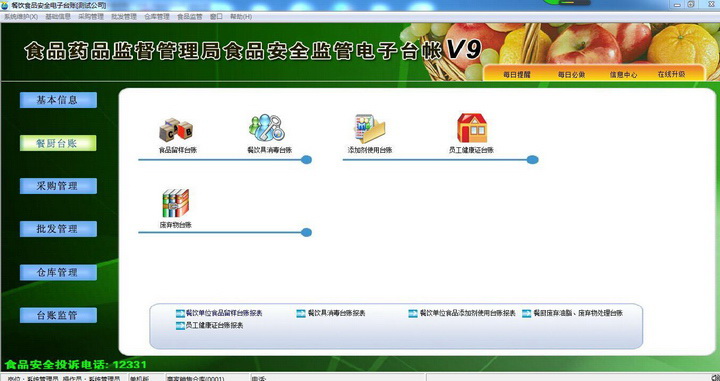 食药局餐饮业食品电子台账管理软件是一款面向 学校、企事业单位食堂、大中型酒店、食品经营单位开发的功能集食品留样台账、餐饮具消毒台账、添加剂使用台账、员工健康台账、废弃物台账、食品进销台账、食品监管于一体的优秀应用软件。