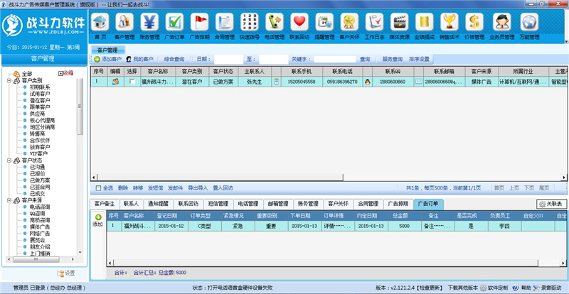1楼 华军网友 2018-04-05 22:34:21战斗力广告传媒客户管理系统--旗舰版界面设计很容易上手,功能很丰富,本人极力推荐!