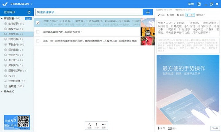 1楼 华军网友 2021-05-25 13:41:49闪记PC版界面设计很容易上手,功能很丰富,本人极力推荐!