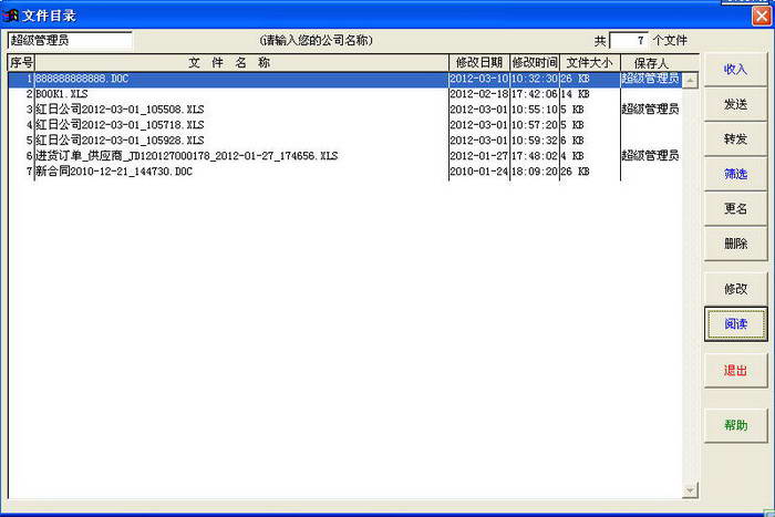文件资料统一管理,查阅非常方便,可以在本单位局域网内电脑查阅,也可以在外地外国通过互联网查阅,可以设置某些文件某个人只能阅读不能修改,不能删除。