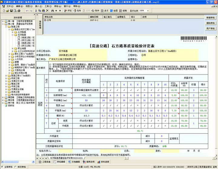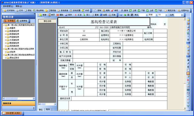 《EPRO公路资料管理系统-广东2013版》依据广东省交通运输工程质量监督站广东省公路工程施工检验表格(2011年7月1日实施)进行编制。