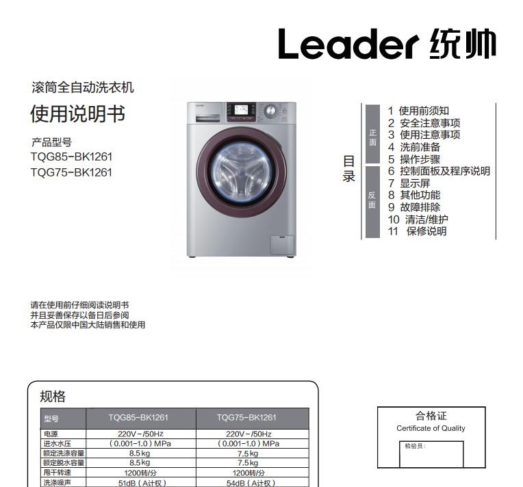 海尔统帅TQG85-BK1261洗衣机使用说明书