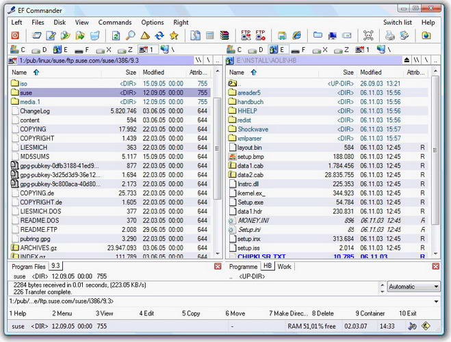 EF Commander 是一个全方位功能的 Windows 文件管理器,如果你曾经使用过 Norton Commander,你也会爱上这个也是由双窗口组成的软件,提供你要的所有功能和在线帮助。功能包括能够在树状的档案目录搜寻执行档案,查询档案属性和编辑档案,在编辑时也能寻找档案中的内容用其它字符串加以取代。EF Commander可以使用内部的编辑器,也能选择外部编辑器,内部编辑器支持多国语言和 16 位 HEX 编辑等。EF Commander 操作十分容易,只要鼠标轻轻一按就能清楚了解系统和各磁盘槽的详细信息。支持多任务处理、拖放操作,内部支持的压缩格式包括 ACE、ARC、ARJ、BZIP2、CAB、GZIP、LHA、RAR、TAR、TBZ、TGZ、ZIP、ZOO、UU、XX 和 MIME,内部的观看程序则可以看 AVI、BMP、CUR、DBF、DIB、EMF、GIF、HEX、HTML、ICO、JPEG、LIB、LNK、MID、MP3、MPG、PCX、 PNG、PX、RLE、RMI、RTF、TGA、TIFF、TXT、WAV、WMF、XBM 和 XPM,甚至内建了支持重复续传的 FTP 客户端软件。EF Commander 可以自己设计外观、使用命令脚本执行时常使用的磁盘动作