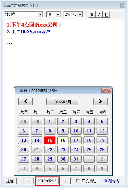 1楼 华军网友 2015-10-19 00:10:39告而广之备忘录很好用,谢谢啦!!