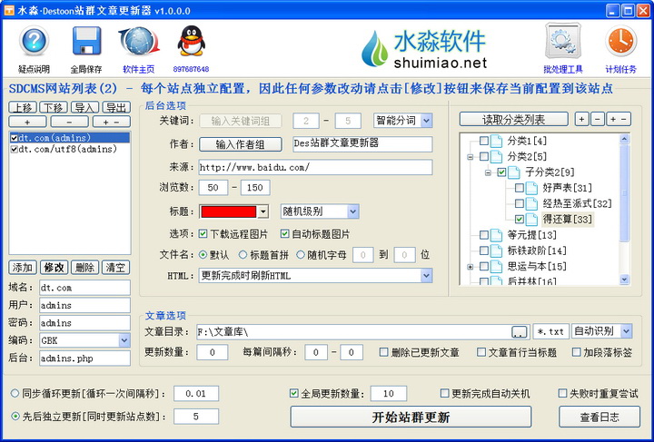 水淼·Destoon站群文章更新器