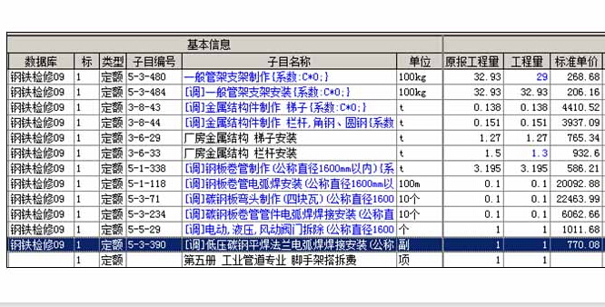二、今达钢铁检修工程预算软件数据库: