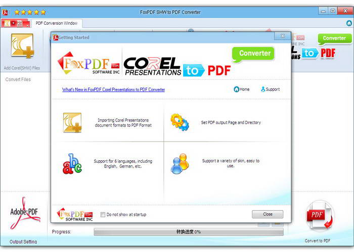 2楼 华军网友 2016-05-10 21:26:03CorelPresentations(SHW)转换成PDF转换器界面设计很容易上手,功能很丰富,本人极力推荐!