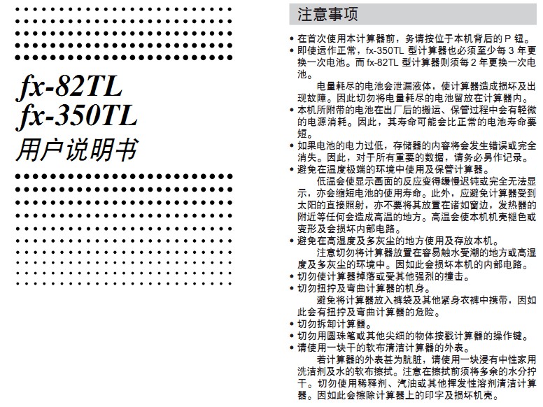 CASIO 计算器fx-350TL/82TL 说明书评论