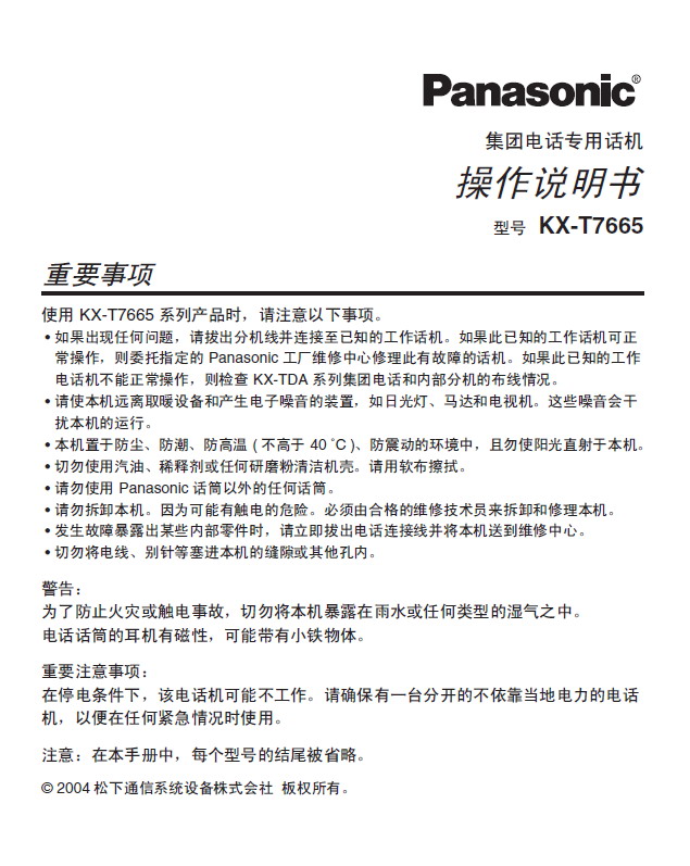 Panasonic 松下 KX-T7665CN 使用说明书评论