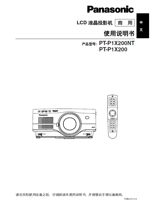 Panasonic 松下 PT-P1X200NT 使用说明书