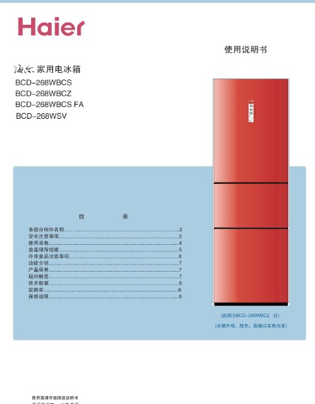 3楼 华军网友 2017-08-02 13:09:05海尔 三门268升无霜保鲜冰箱 BCD-268WBCS 说明书希望可以越做越好,加油!