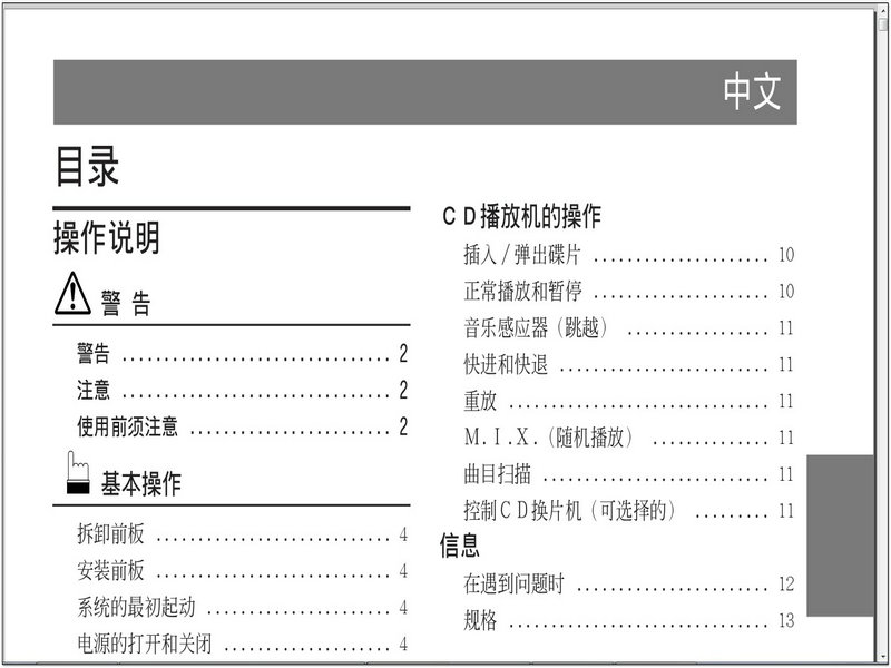 3楼 华军网友 2017-08-19 23:26:01阿尔派 MP3/WMA/AAC CD Receiver CDM-9821说明书超级棒!点一亿个赞!!!
