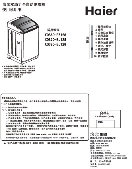 3楼 华军网友 2016-05-30 10:10:20海尔 波轮7.0公斤变频双动力洗衣机 XQS70-BJ128 说明书希望可以越做越好,加油!