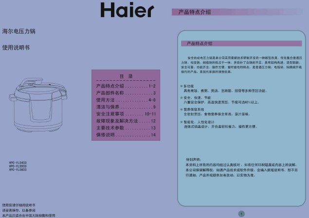 海尔 智能电压力锅HPC-YLS503 说明书