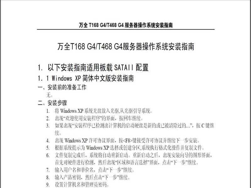 联想万全T168 G4&T468 G4 Windows XP操作系统安装指南说明书