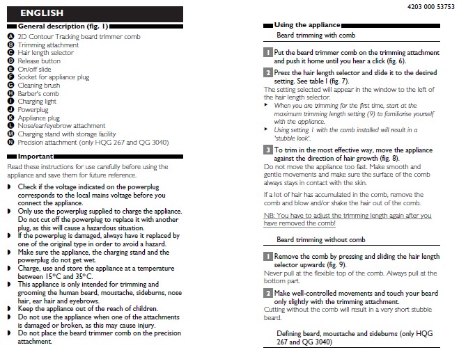 飞利浦QG3040/304 合1修剪组合装(EN)说明书