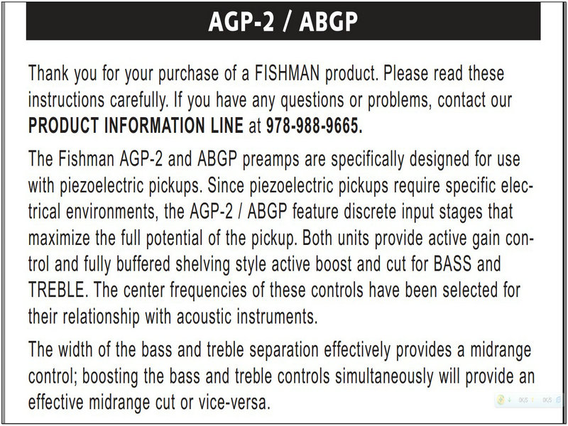 Fender Fishman AGP-2, ABG Preamps说明书