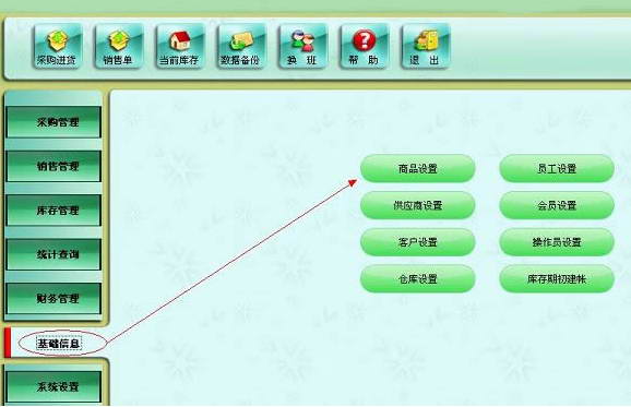 1.基础信息模块:添加商品信息,按商品信息种类进行分类,便于查找商品;添加客户信息、员工信息、仓库信息、供货商信息、会员信息、操作员授权、库存期初建帐等。