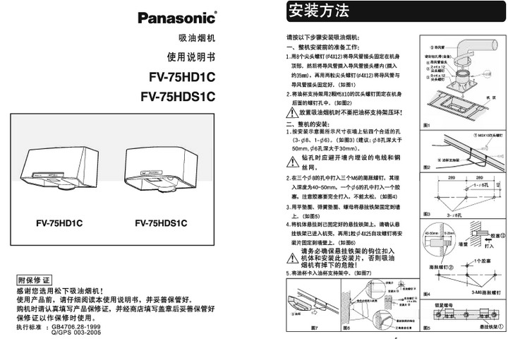松下 FV-75HD1C油烟机 说明书