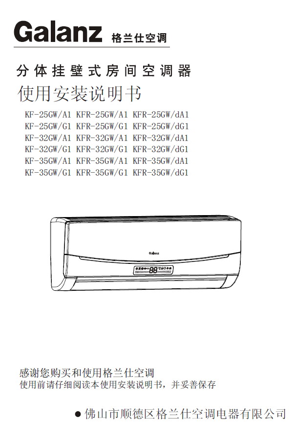 Galanz格兰仕 KFR-35GW/A1分体挂壁式房间空调器 使用说明书