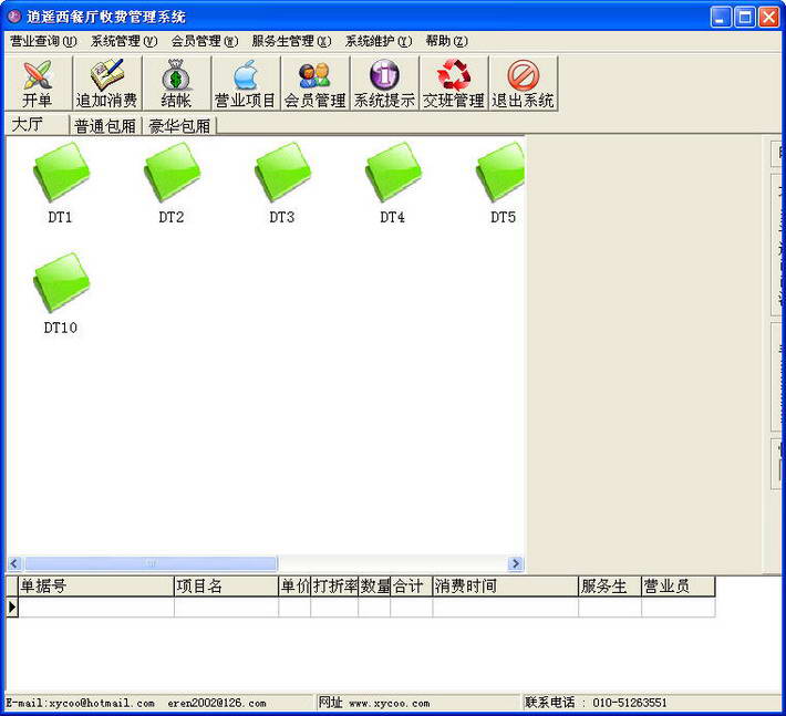 适用于西餐厅收费管理,完全模拟了西餐厅的营业功能,具有单人开单、多人开单、合并手牌、拆分手牌、单人结帐、多人结帐、等各项功能,同时操作简单、即使从未用过计算机的人,也可在几分钟内熟练地营业。这款是一款多家西餐厅正在使用的,比较成熟的行业管理软件,逍遥西餐厅收费管理系统是逍遥公司推出的一款专业的西餐厅收费管理软件,它集前台收费系统,员工管理系统,会员管理系统等强大功能为一身,系统界面简洁优美,操作直观简单,无需专门培训即可正常使用。是西餐厅等信息化管理理想的收费管理软件,本管理系统的最完善的西餐厅管理系统。