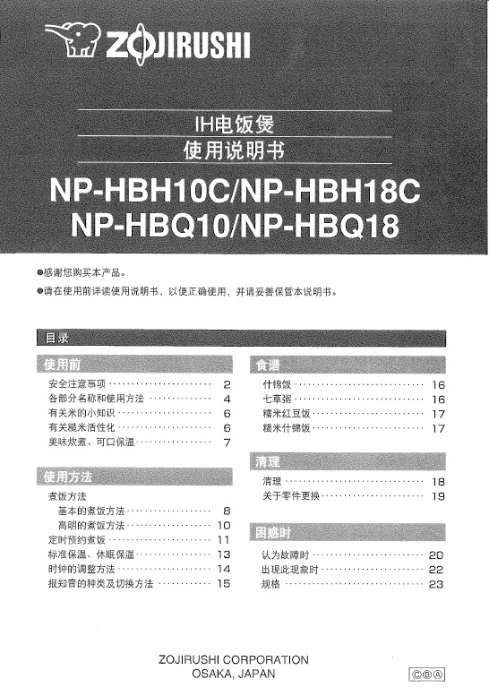 象印 NP-HBH10C型电饭煲 说明书
