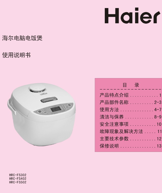 3楼 华军网友 2016-10-12 14:35:35海尔 HRC-FS502电饭煲 使用说明书超级棒!点一亿个赞!!!