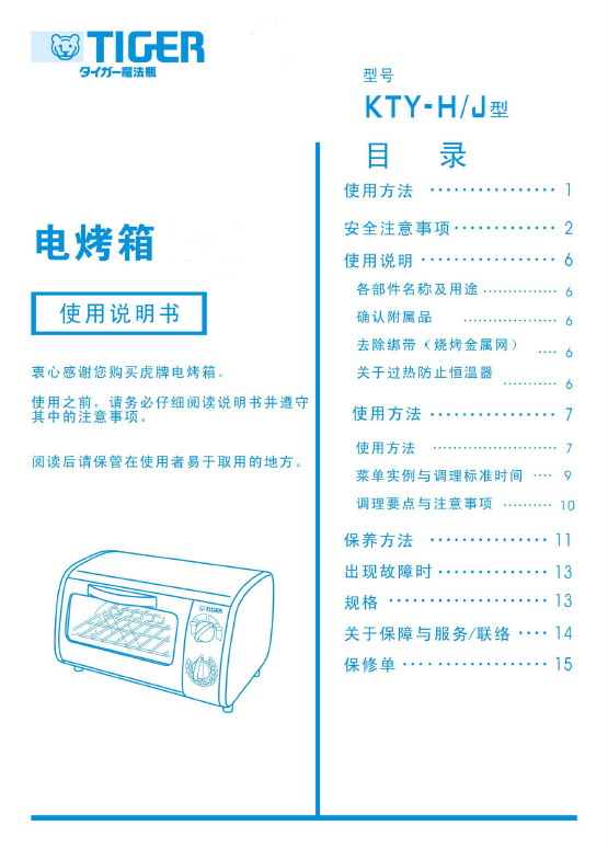 虎牌 KTY-J100电烤箱 使用说明书评论