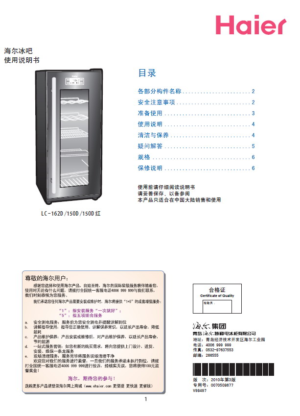 1楼 华军网友 2019-08-17 17:13:36海尔 LC-162D冰吧 使用说明书很好用,谢谢啦!!