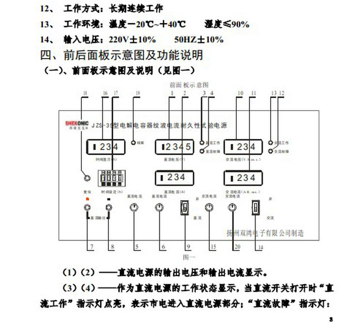西康尼克JZS-35型电解电容器纹波电流耐久性试验电源说明书