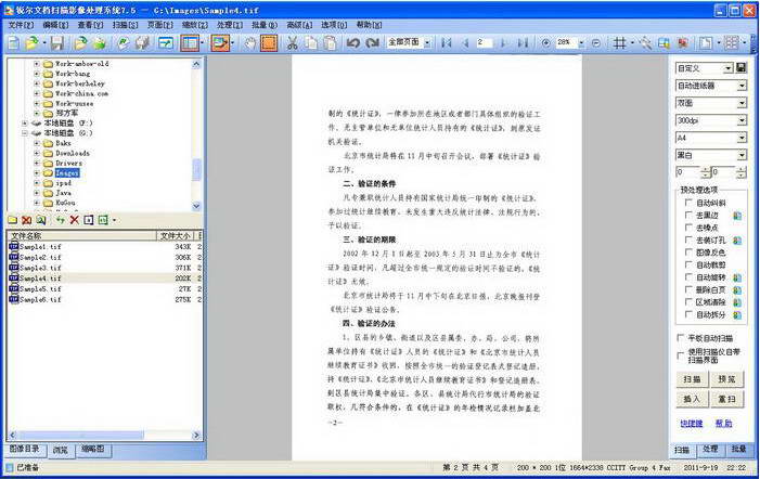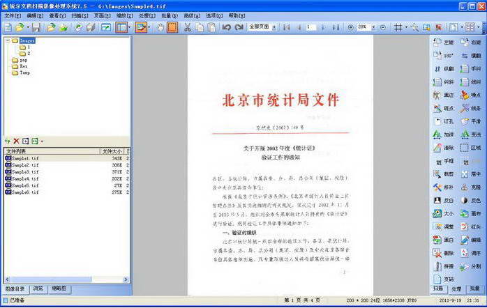 本软件是通过普通或高速扫描仪将各种纸质文档、资料扫描录入计算机,经过图像处理、压缩、优化并存储为电子影像文件的工具软件;是单位、企业资料管理部门进行文档电子化,将传统纸质文档管理改为先进、统一、高效的电子化文档管理的绝佳好帮手,可以广泛应用在图书馆、档案馆、出版社、政府机关、银行、工商、税务、保险、医院等机构、各种企事业档案部门及档案数字化扫描加工企业。