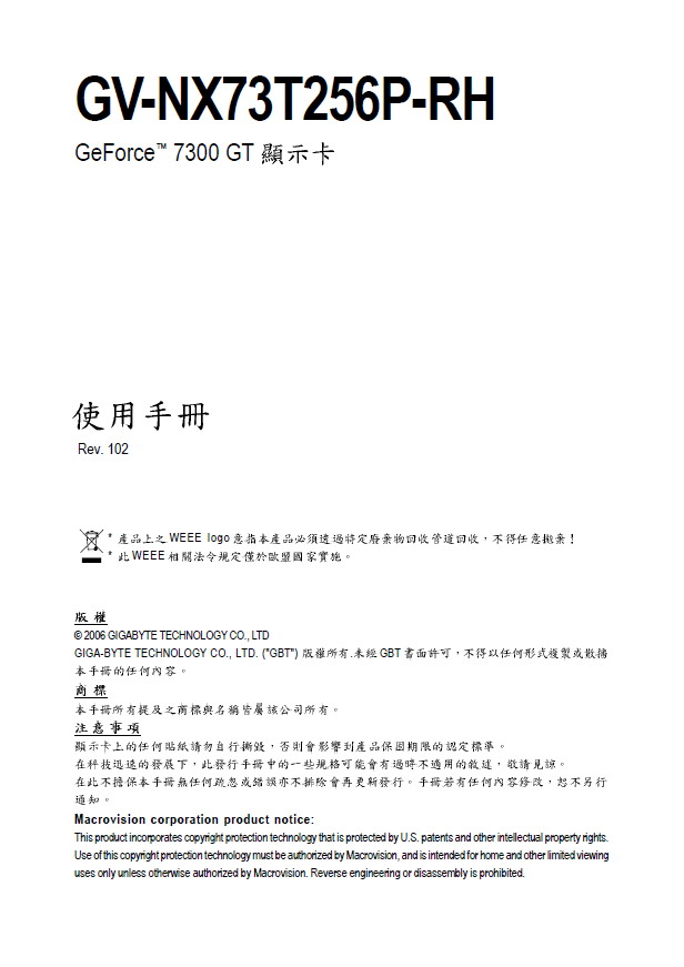 技嘉 GV-NX73T256P-RH型显卡 说明书