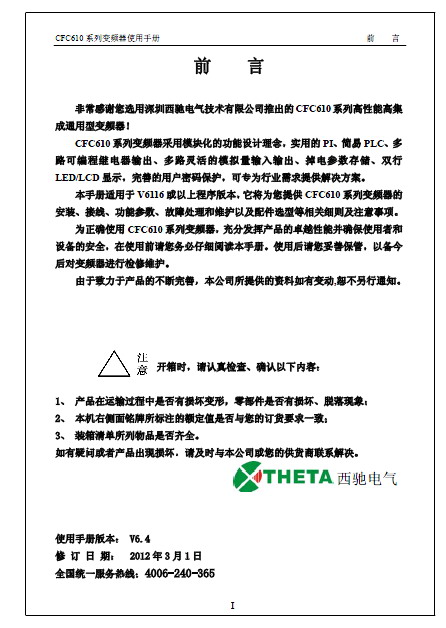 2楼 华军网友 2017-05-23 22:49:03西驰 CFC610-4T0110P变频器 使用手册超级棒!点一亿个赞!!!