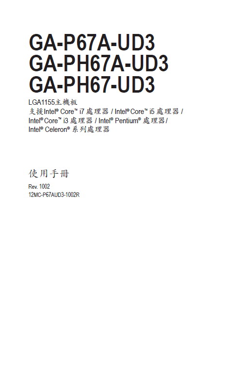 技嘉 GA-PH67-UD3(rev. 1.0)主板 说明书评论