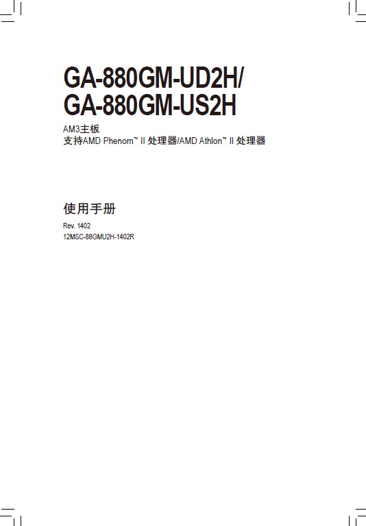 技嘉 GA-880GM-UD2H(rev. 1.4)主板 说明书
