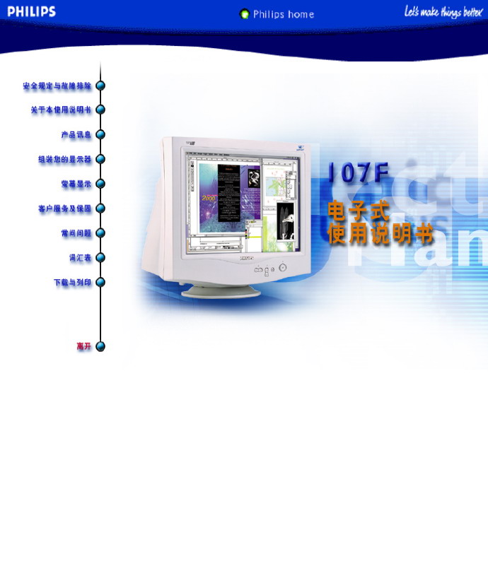 1楼 华军网友 2019-03-18 00:49:25飞利浦 107F41彩显 使用说明书界面设计很容易上手,功能很丰富,本人极力推荐!