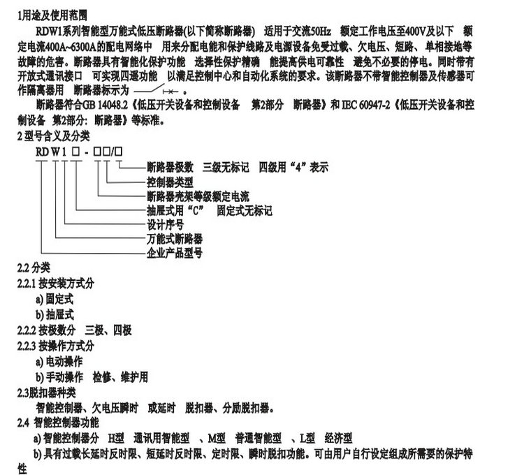 人民电器RDW1系列智能型万能式低压断路器说明书评论