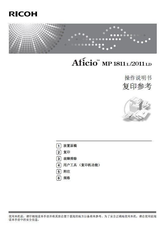 3楼 华军网友 2017-12-19 20:40:18RICOH理光 MP2011LD型复印机 使用说明书超级棒!点一亿个赞!!!