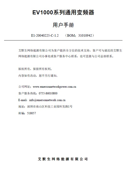 1楼 华军网友 2015-06-25 04:38:29 艾默生(华为) EV3000变频器 说明书界面设计很容易上手,功能很丰富,本人极力推荐!