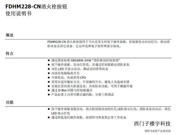 西门子 FDHM228-CN消火栓按钮 使用说明书