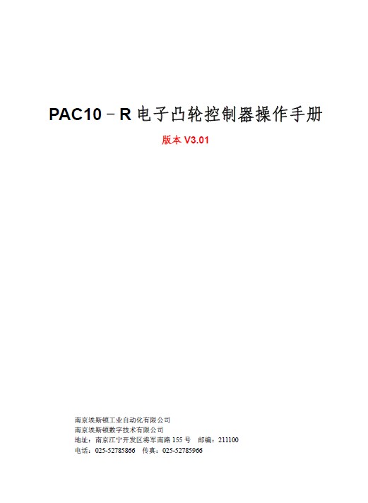 埃斯顿 PAC10-R电子凸轮控制器 操作手册