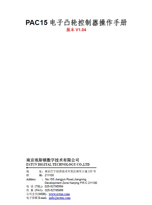 埃斯顿 PAC15电子凸轮控制器 操作手册
