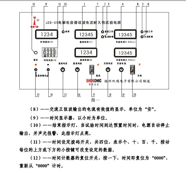 西康尼克JZS-35型电解电容器纹波电流耐久性试验电源使用说明书
