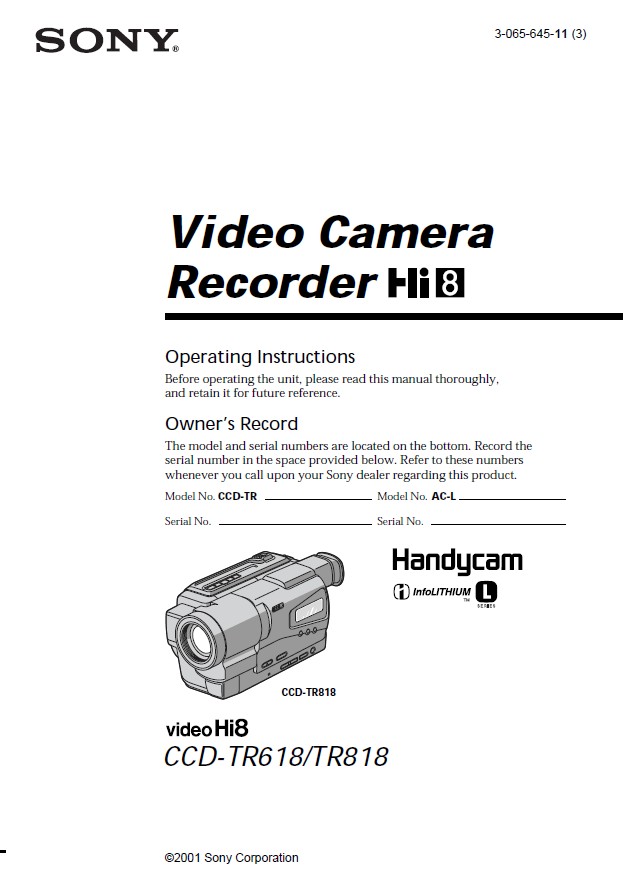 索尼 CCD-TR618模拟摄像机 说明书评论