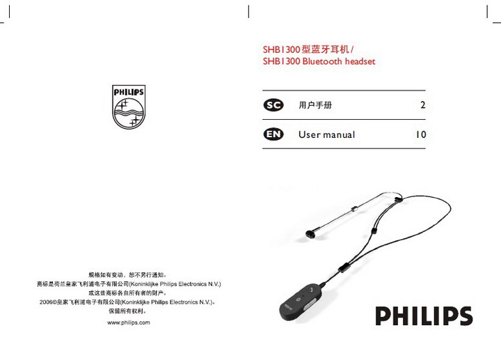 PHILIPS SHB1300型蓝牙耳机 用户手册