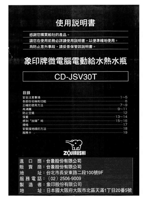 象印 CD-JSV30T型电动热水瓶 说明书