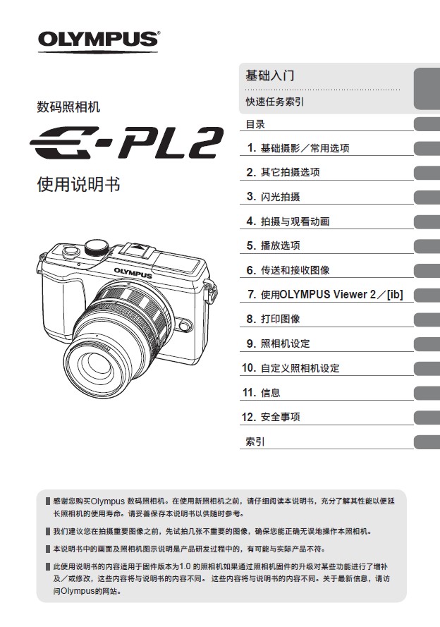 奥林巴斯 E-PL2数码相机 使用说明书评论