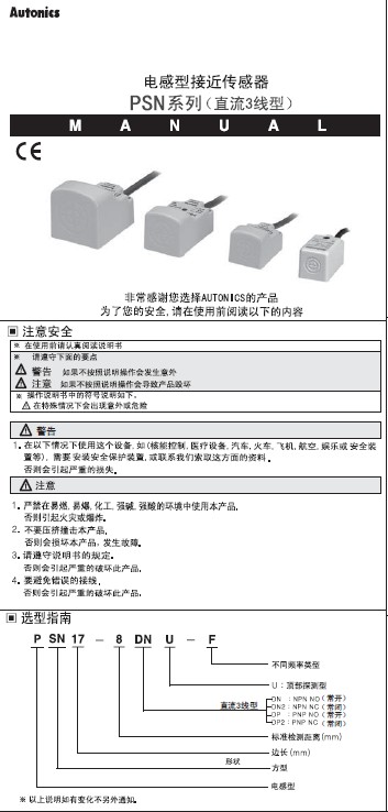 奥托尼克斯 PSN40-20DP型电感型接近传感器 使用说明书