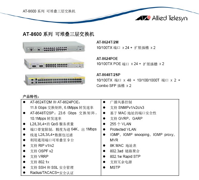 Allied Telesyn AT-8600系列可堆叠三层交换机说明书